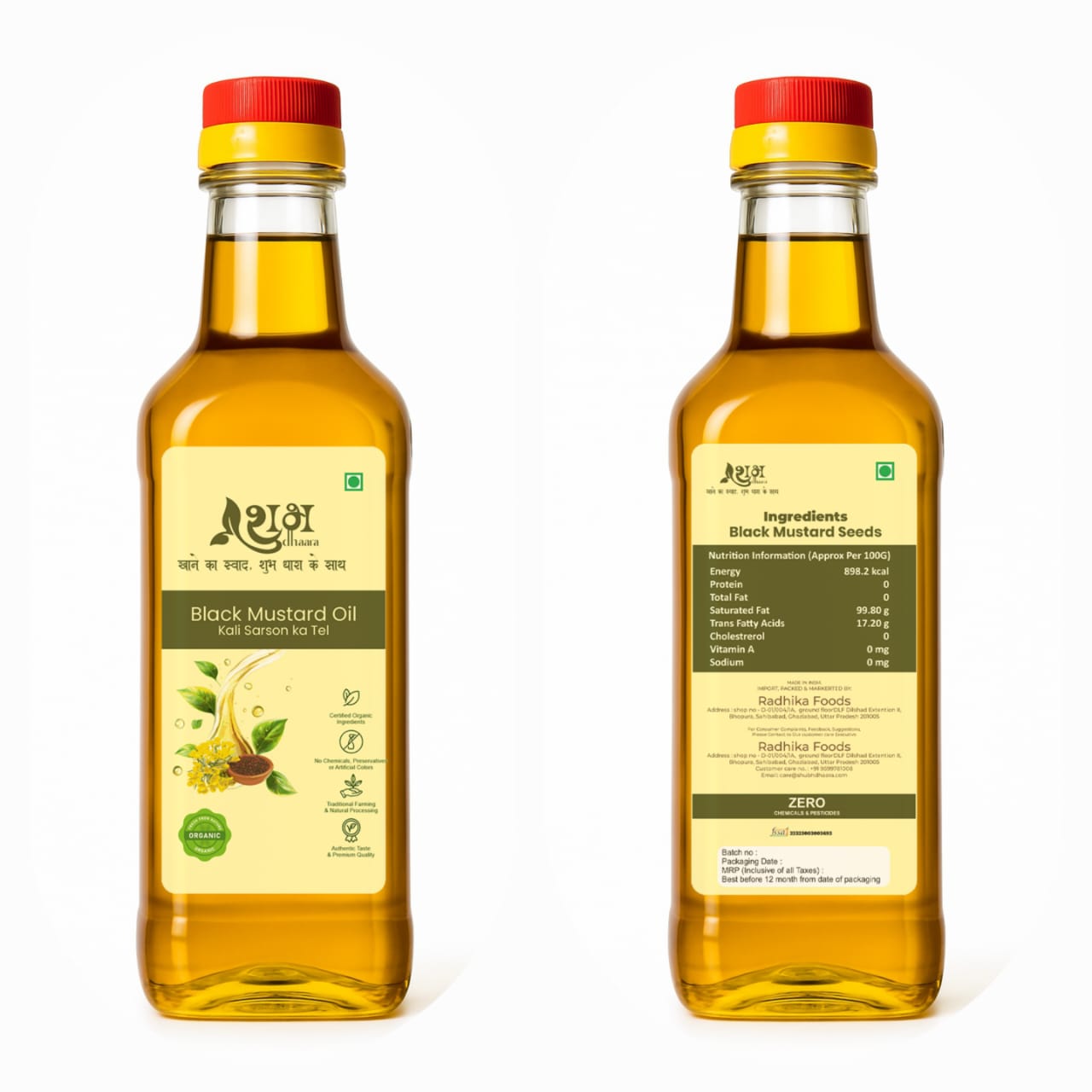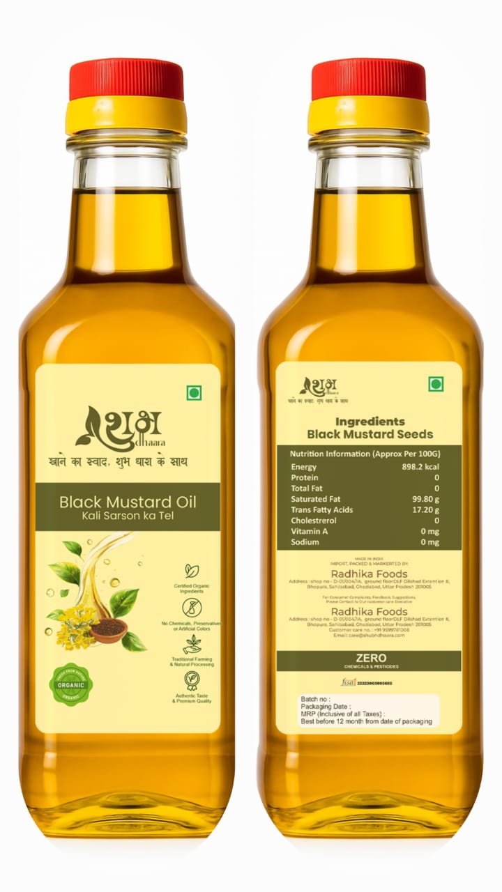 Shubhdhaara Organic Mustard Oil is extracted using the Traditional Cold-Pressed (Kacchi Ghani) method, ensuring the oil retains all essential fatty acids, antioxidants, and nutrients. Free from heat extraction and harmful chemicals, it delivers authentic aroma, real pungency, and natural health goodness directly from mustard seeds.